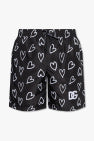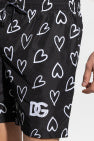 Black swimming shorts from Dolce & Gabbana. Embellished with a white print with hearts, this pair features a drawstring waist, two side seam pockets and one back zip pocket accompanied by a logo patch.